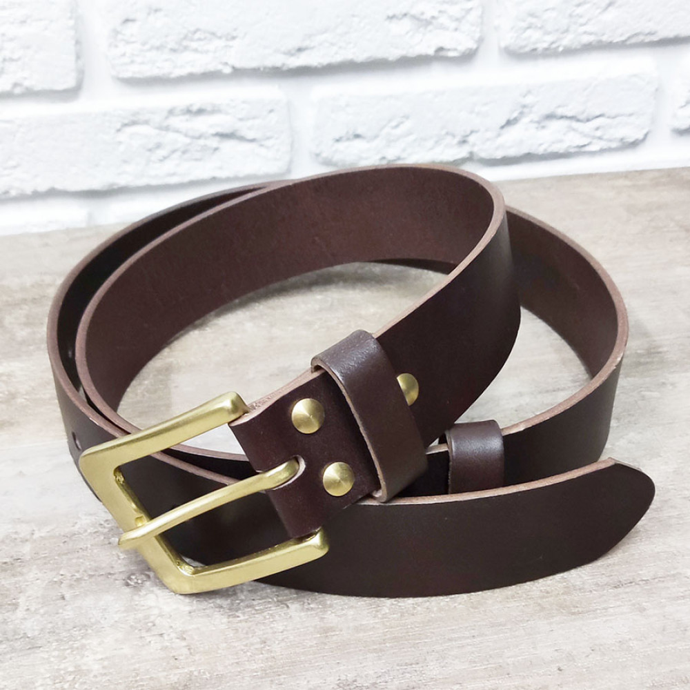 Ремень кожаный 38 мм толщ. 4 мм пряжка латунная Коричневый
