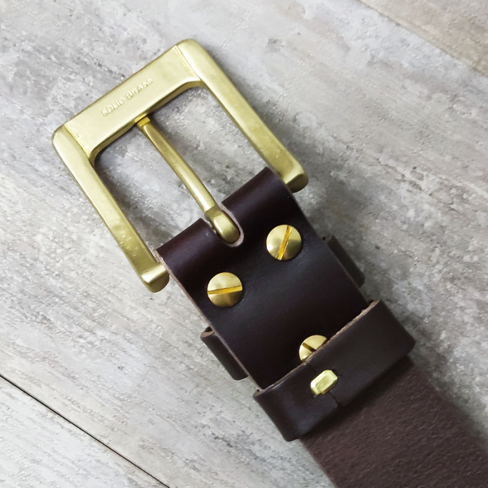 Фурнитура - латунная пряжка и ременные винты.