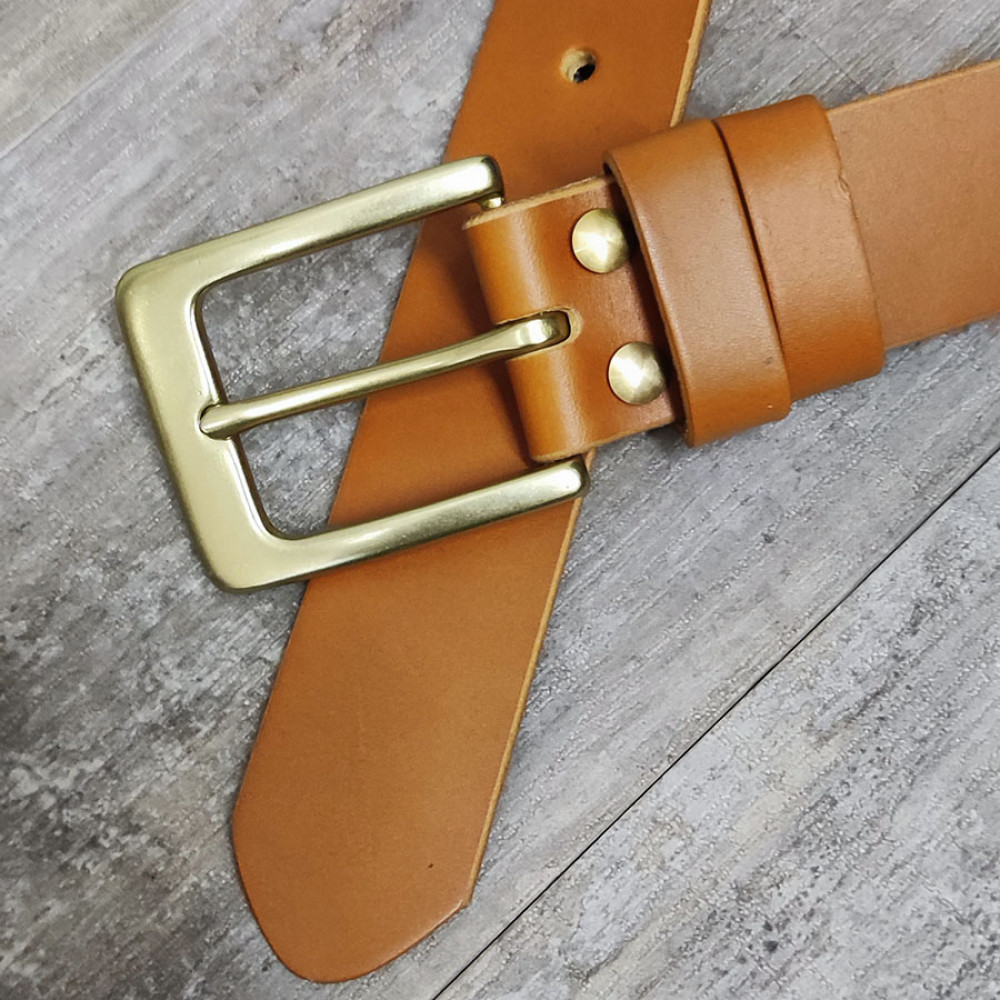 Ремень кожаный 38 мм толщ. 4 мм пряжка латунная Рыже-коричневый