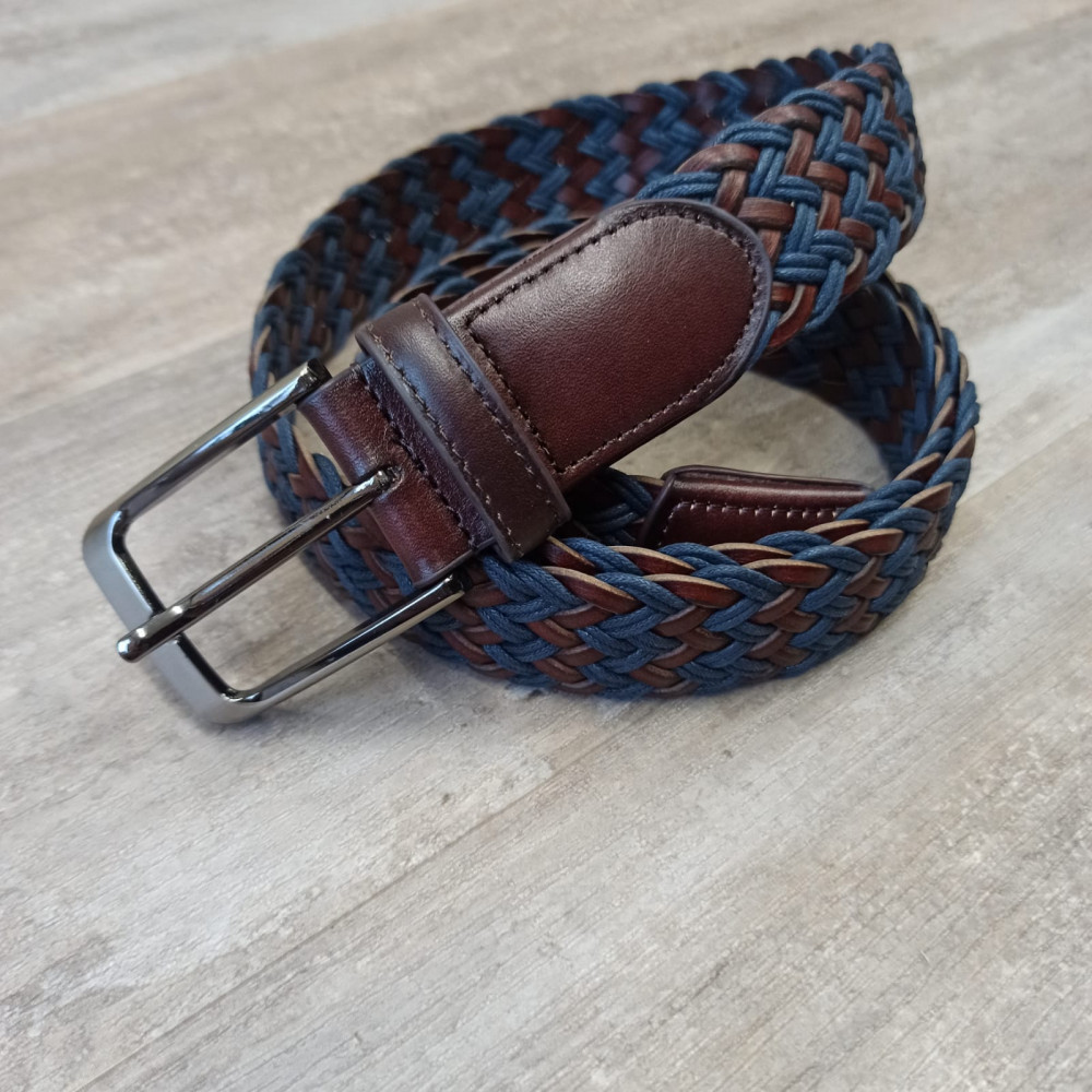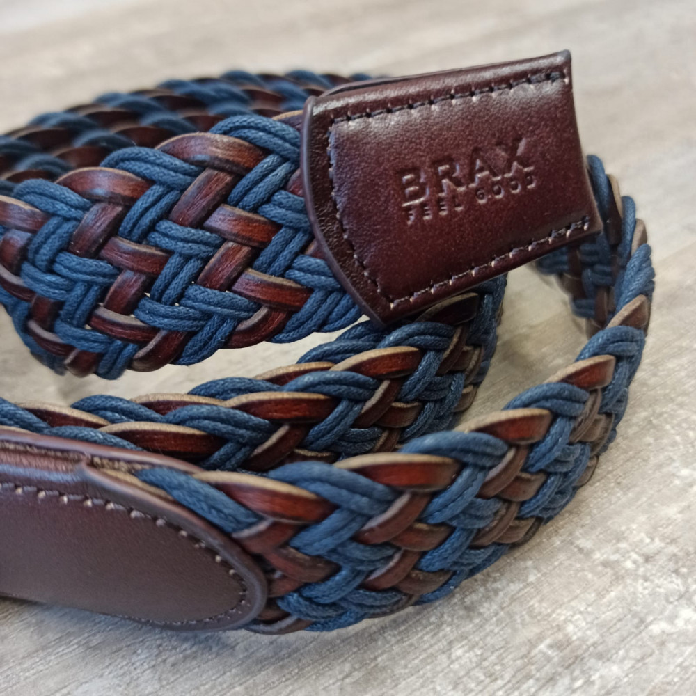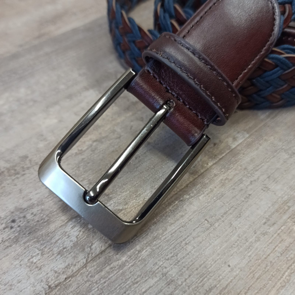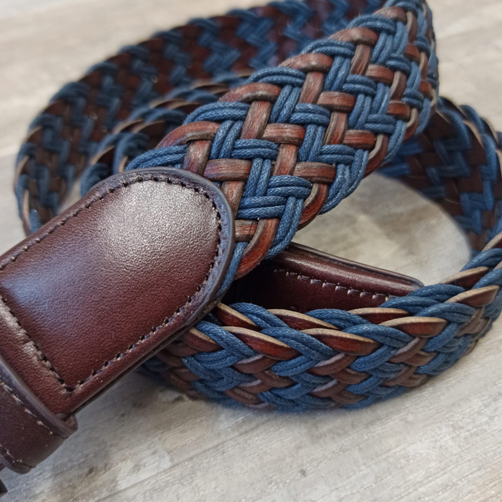 Ремень плетеный 38 мм толщ. 3.5 мм Сине-коричневый