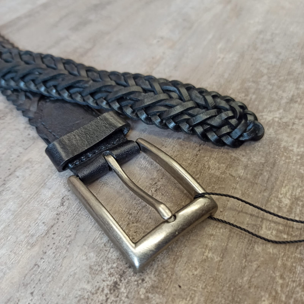 Плетеный объемный ремень из натурального кожаного шнура с классической металлической пряжкой. Выполнен из 100% натуральной кожи высокого качества.