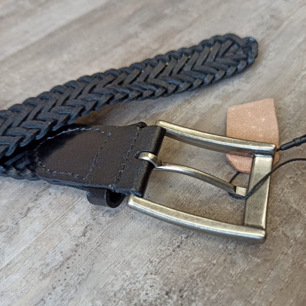 Плетеный ремень удобен тем, что его можно застегнуть через любое отверстие.