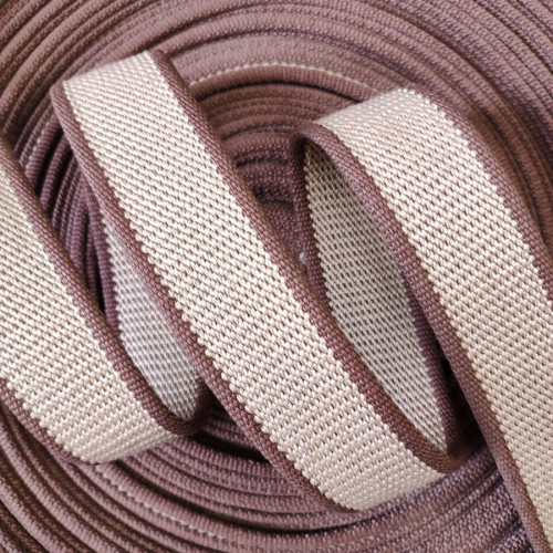 Плотная ременная лента из полиэстера с интересным плетением, коричневая с белыми и темно-коричневыми..