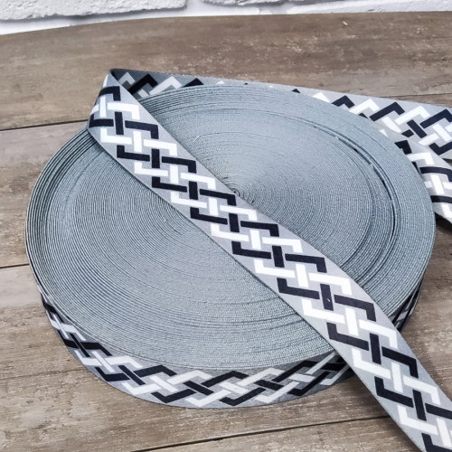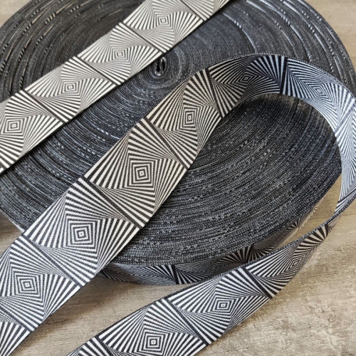 Стропа (ременная лента) плотная из синтетических волокон - с геометрическим орнаментом черно-б..