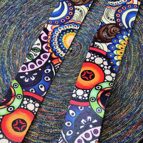 Стропа (ременная лента) плотная из синтетических волокон с интересным универсальным по цветам принто..