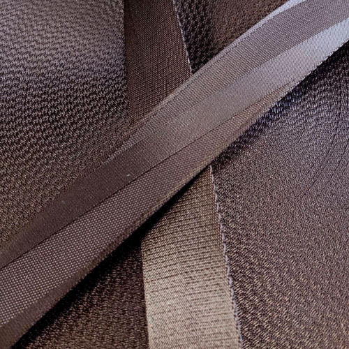 Плотная ременная текстильная лента из полиэстера коричневого цвета с интересным рельефом в виде поло..