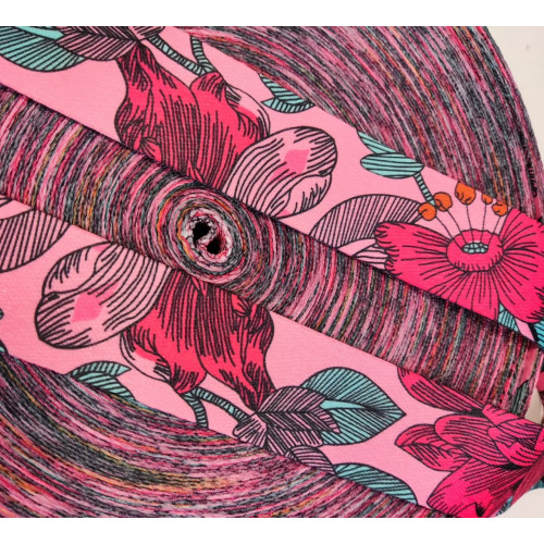 Стропа (ременная лента) плотная из синтетических волокон - с ярким женственным цветочным орнаментом,..