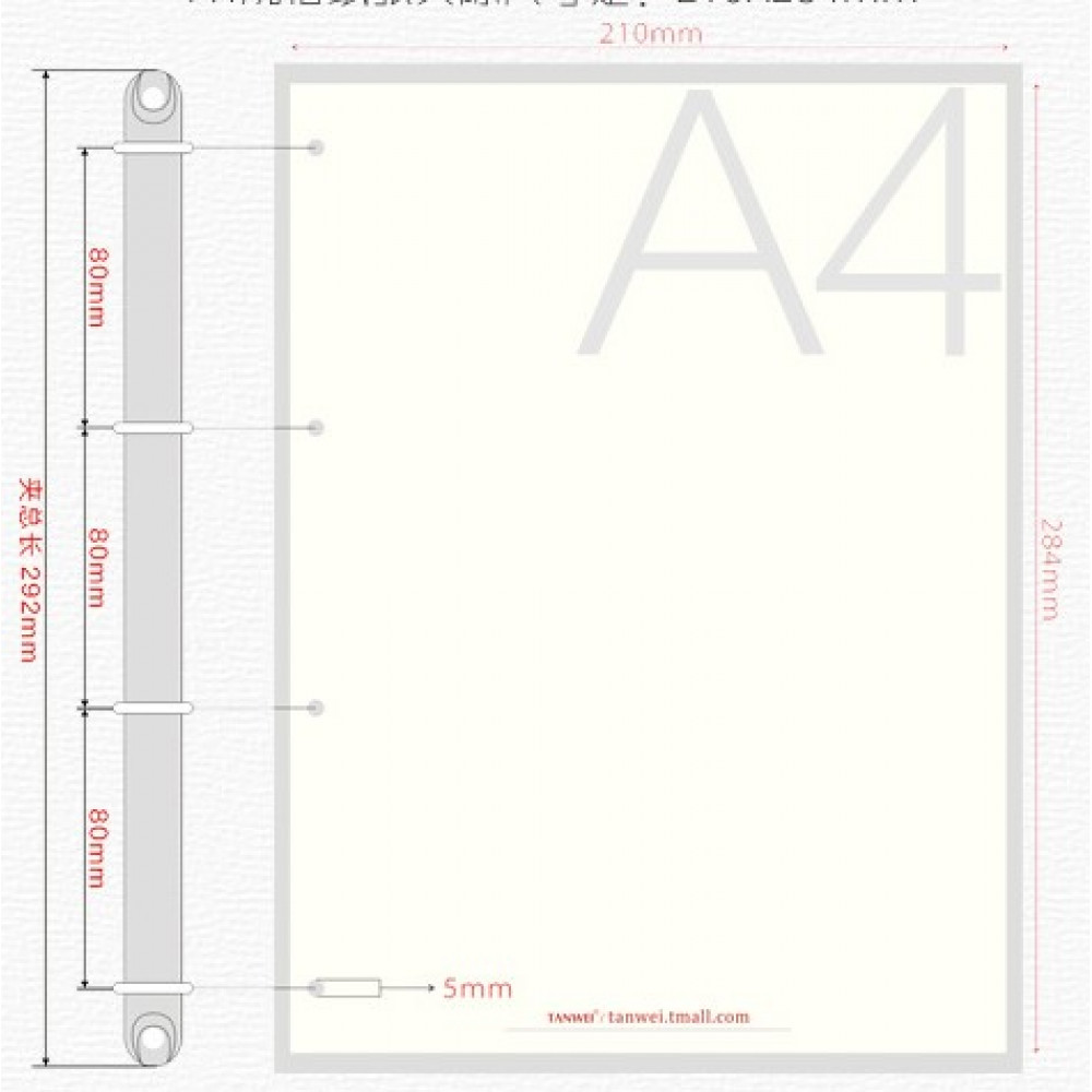 Размер листов: 284х210 мм, 4 отверстия для кольцевого механизма.