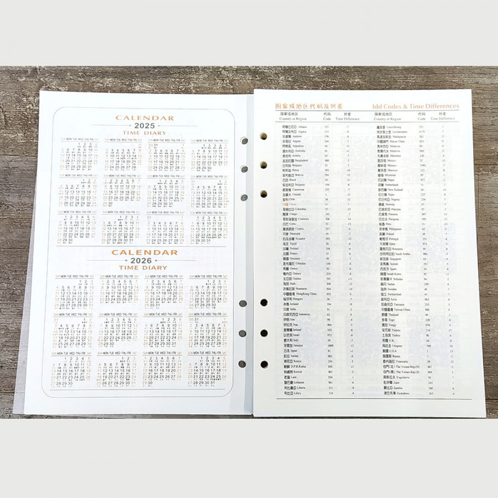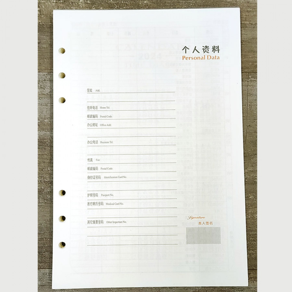 Сменный внутренний бумажный блок для ежедневников с календарем, разделом для записи контактов и пр.
