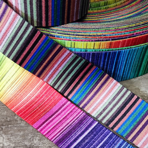 Плотная ременная лента, с классическим геометрическим рисунком - полоски разных цветов.Ширина - 38 м..