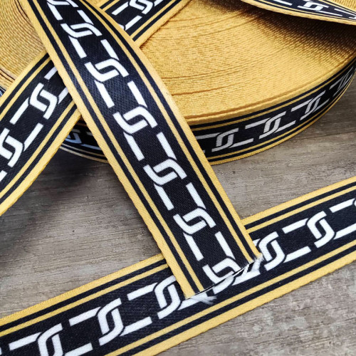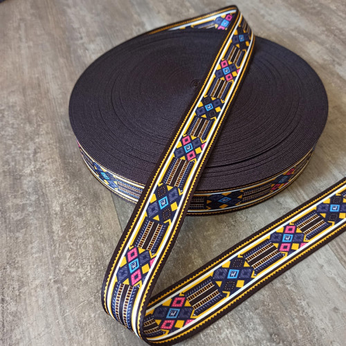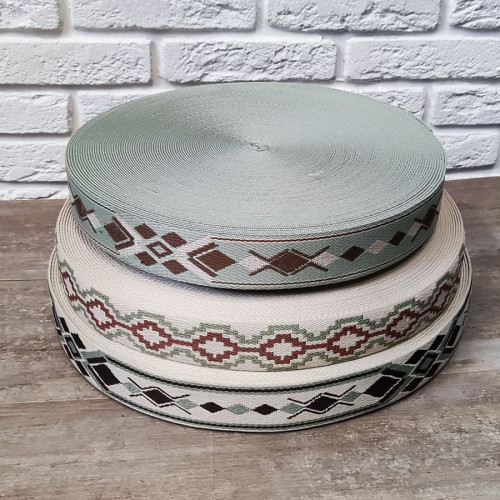 Плотная ременная лента из полиэстера с геометрическим орнаментомШирина - 38 мм, толщина около 1,5 мм..