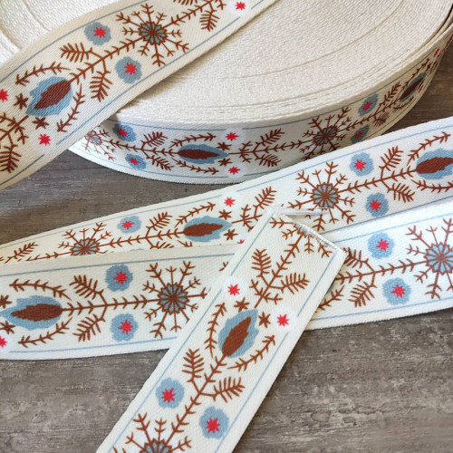 Стропа (ременная лента) плотная из синтетических волокон - с ботаническим орнаментом - ветви и цвето..