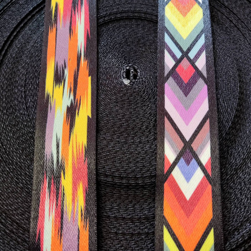 Плотная ременная лента (тесьма)из синтетических волокон. Текстильная стропа с ярким принтом - фантаз..