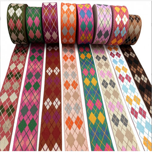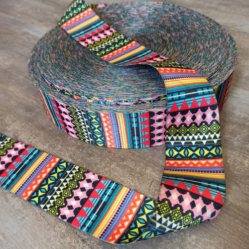 Стропа (ременная лента) плотная из синтетических волокон - с ярким орнаментом в виде ромбов. Оригина..