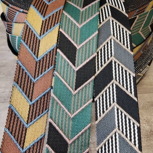 Стропа (ременная лента) плотная из синтетических волокон - с выдержанным геометрическим орнаментом в..