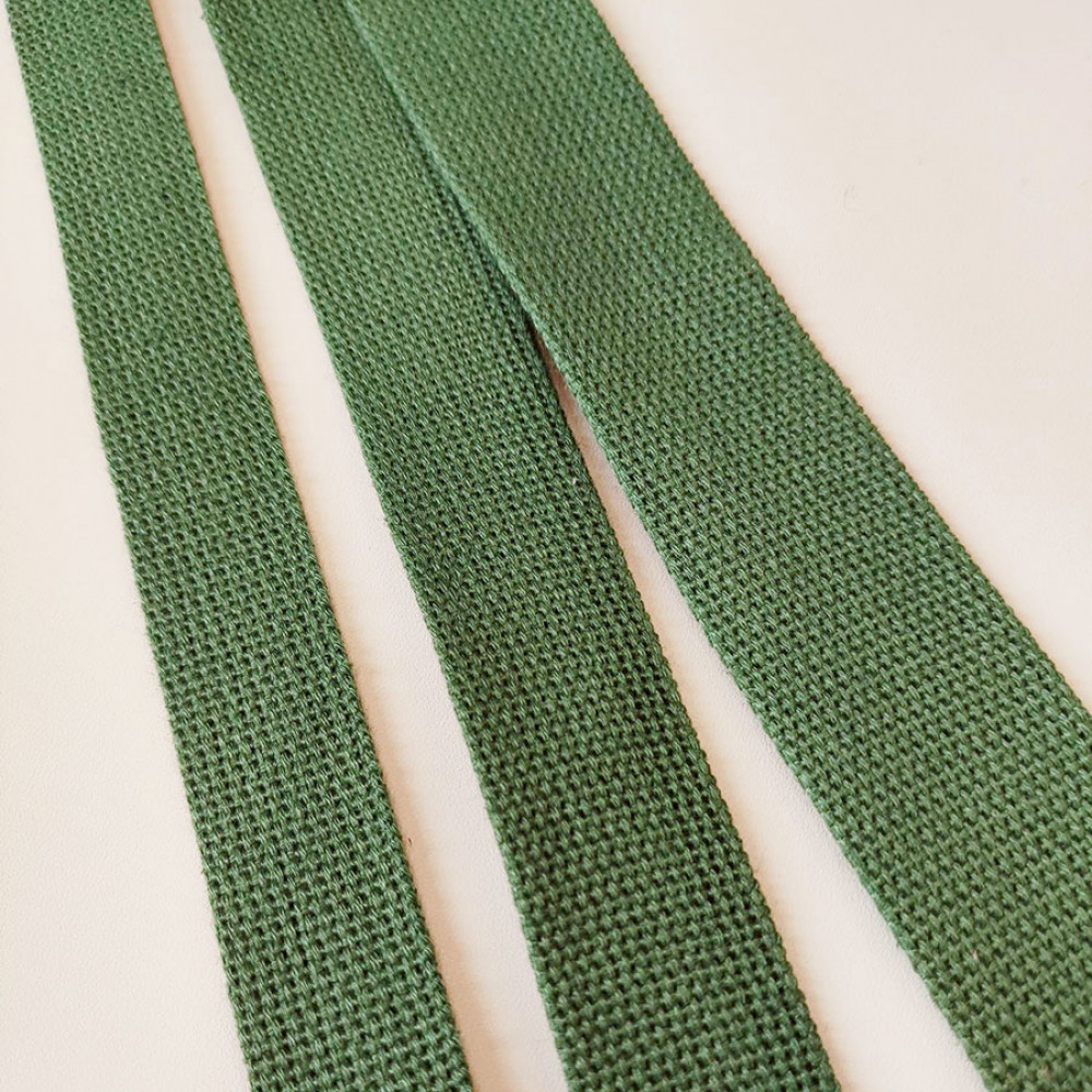 Плотная ременная лента из натуральных материалов. Материал хлопок с добавлением полиэстера, который придает материалу дополнительную прочность.