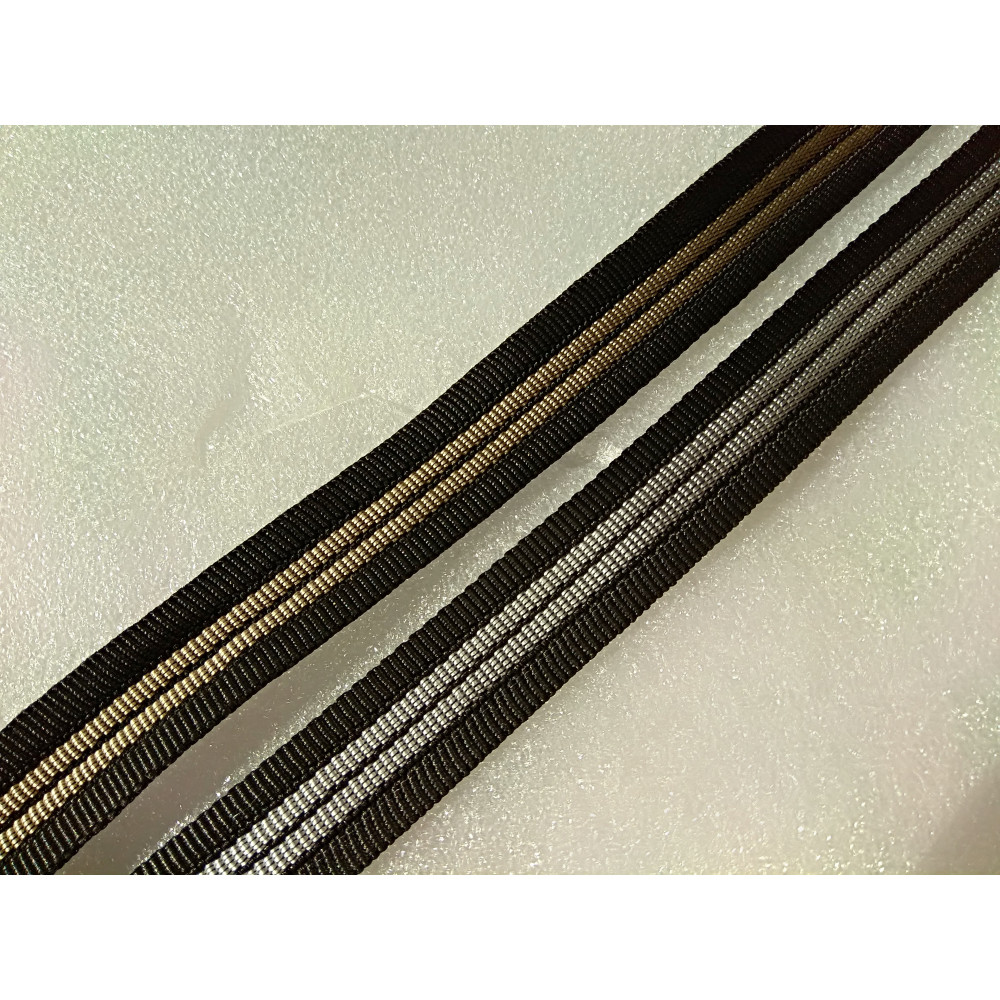 Толщина ок.1,5мм. Ширина: 25 мм. Цвет ленты черный, полоска: бежевая, серая