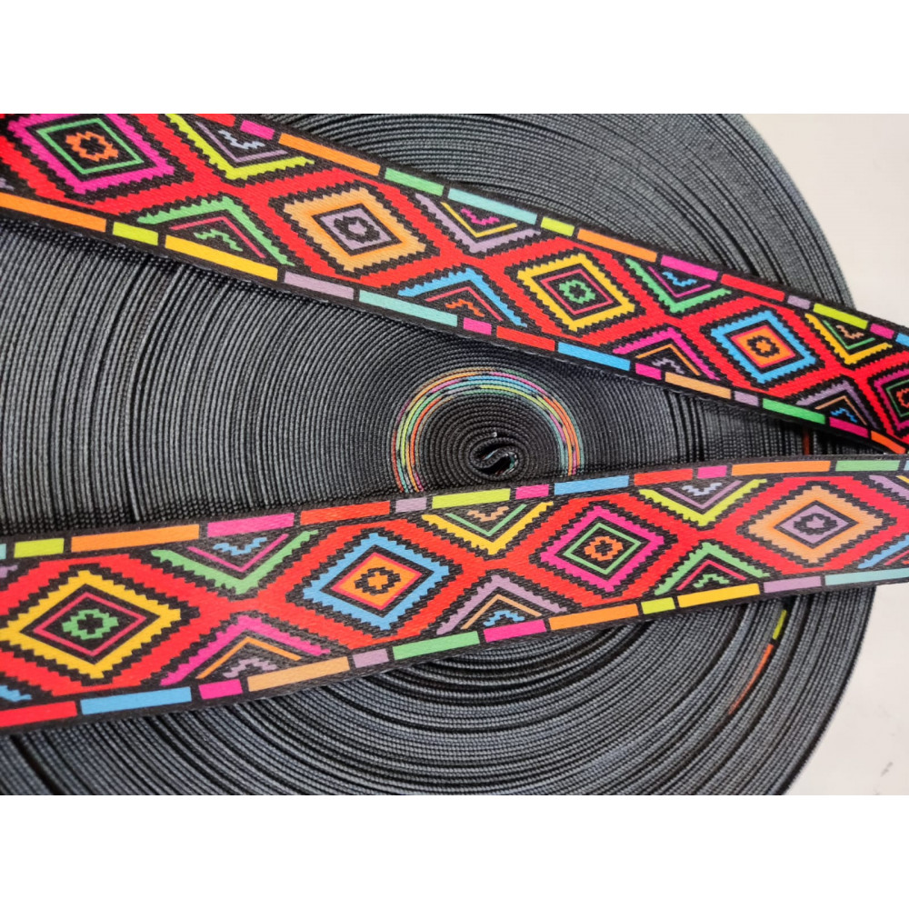 Плотная ременная лента из синтетических волокон. Оригинальное цветовое сочетание текстильной галантерейной стропы в этническом ленты украсит ваше изделие.