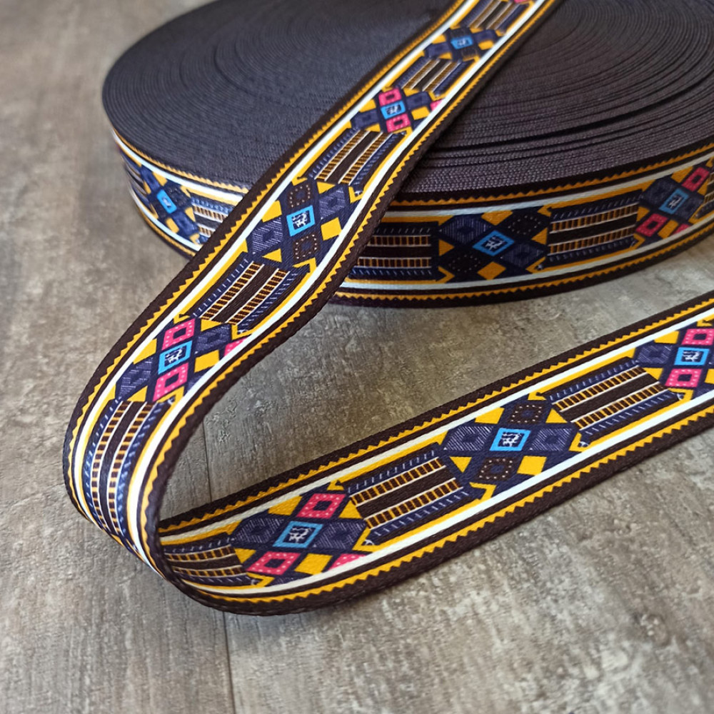 Плотная ременная лента из синтетических волокон. Оригинальное цветовое сочетание ленты украсит ваше изделие.