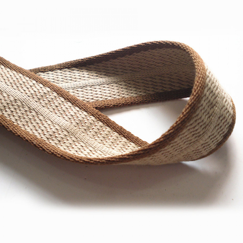 Плотная ременная лента из натурального хлопка с добавлением синтетических волокон и уплотненным переплетением по краям и центральной части, что придает ременной тесьме дополнительную прочность. Оригинальное переплетение, рельефность и приятное цветовое сочетание текстильной ленты украсит ваше изделие.