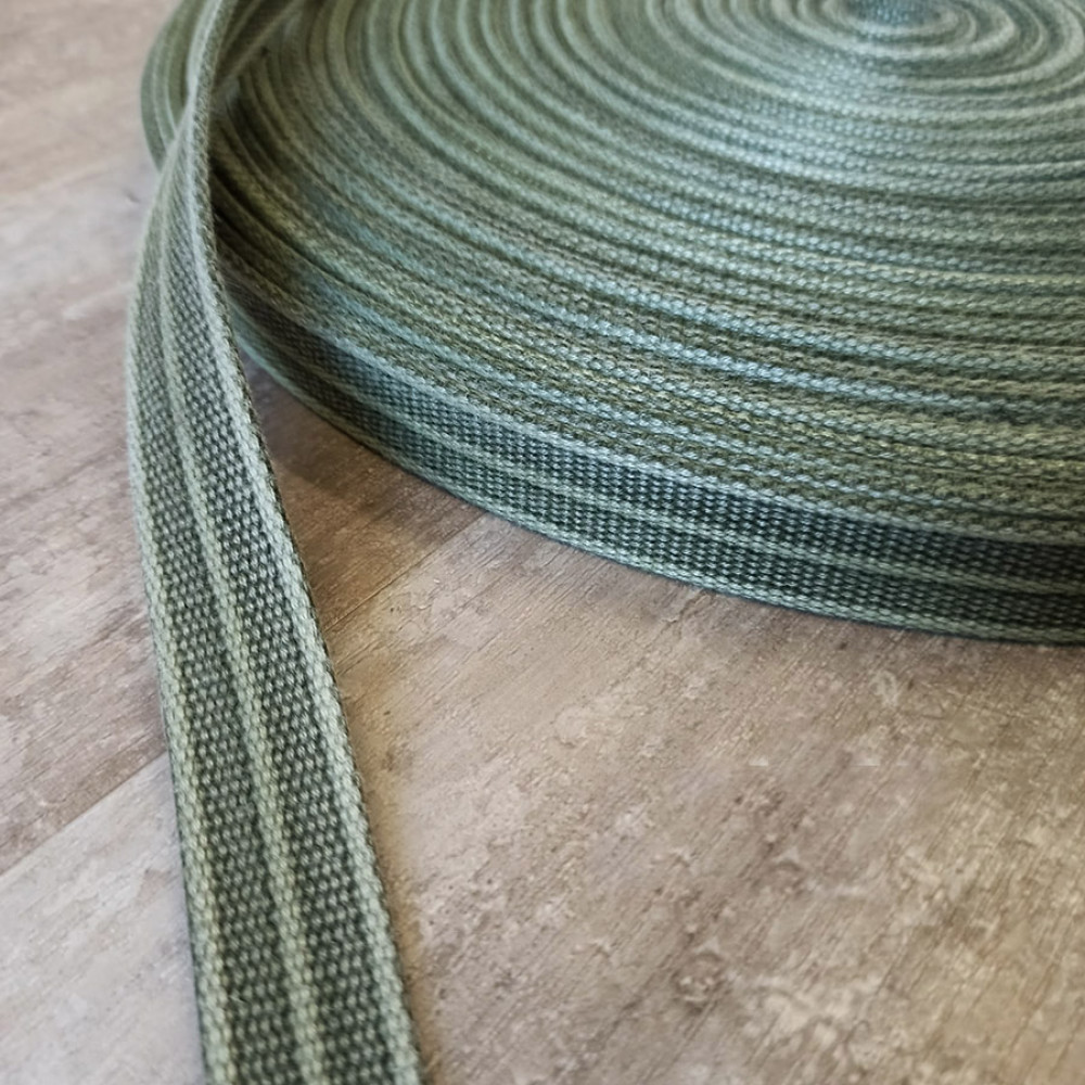 Плотная ременная лента из натуральных материалов. Материал хлопок с добавлением полиэстера, который придает материалу дополнительную прочность.