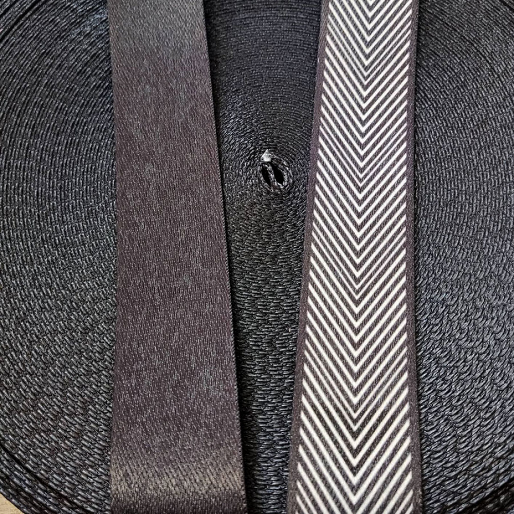 Стропа (ременная лента) плотная из синтетических волокон - с классическим геометрическим орнаментом черно-белой расцветки подойдет как для женских, так и для мужских галантерейных изделий.