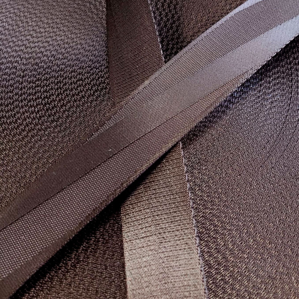 Плотная ременная текстильная лента из полиэстера коричневого цвета с интересным рельефом в виде полосы, пересекающей ленту