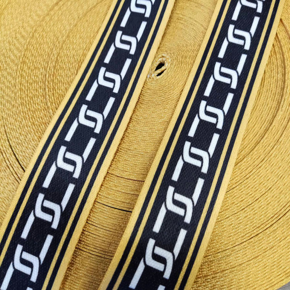 Стропа (ременная лента) средней плотности из синтетических волокон. Оригинальное цветовое сочетание текстильной стропы с ярким принтом украсит ваше изделие.