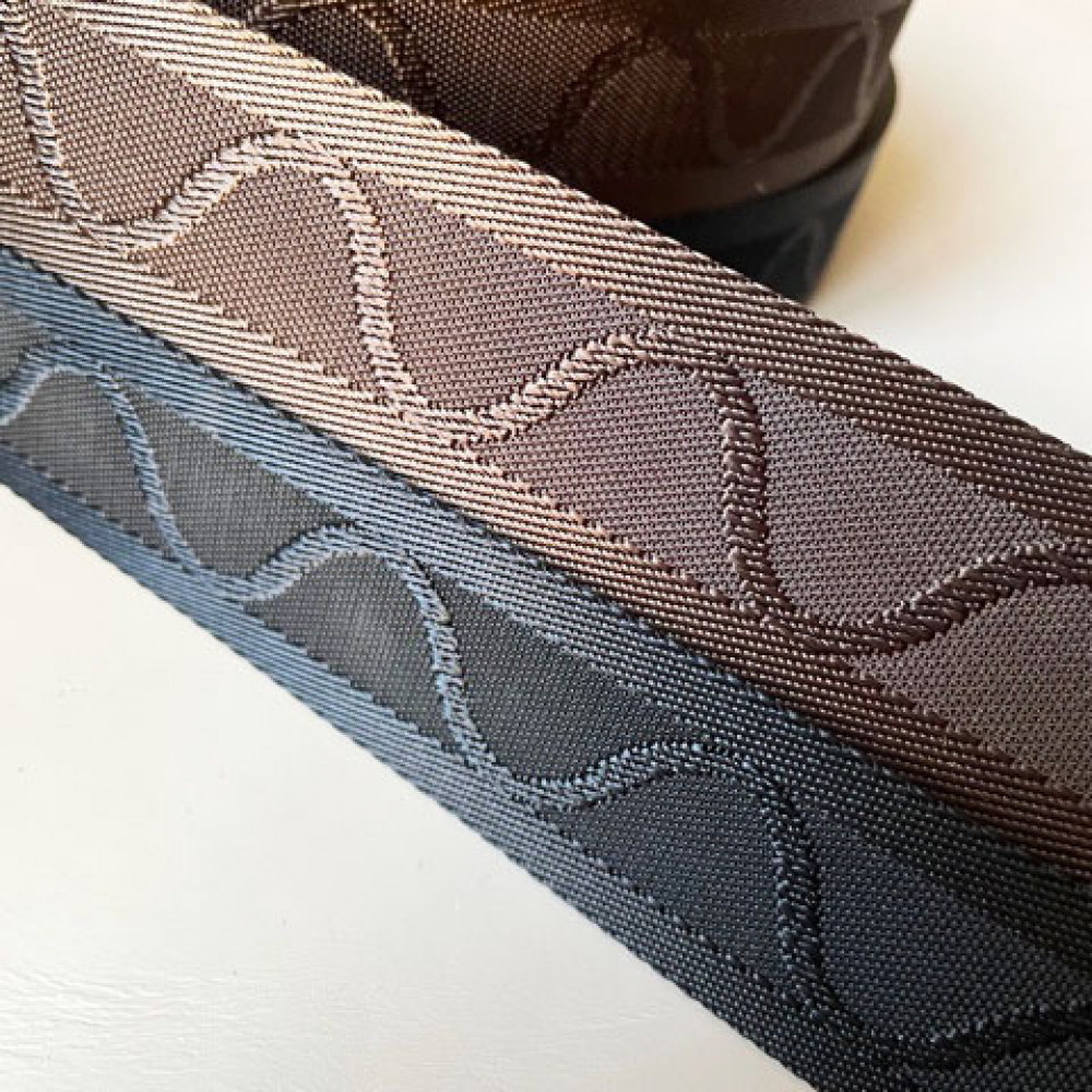 Плотная ременная текстильная лента из полиэстера коричневого цвета с интересным рельефом в виде волны и "бордюрами" по краям