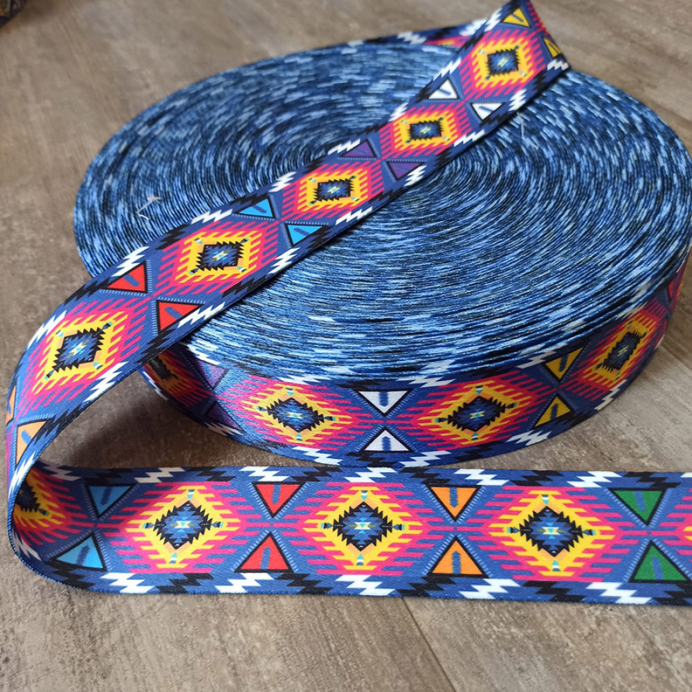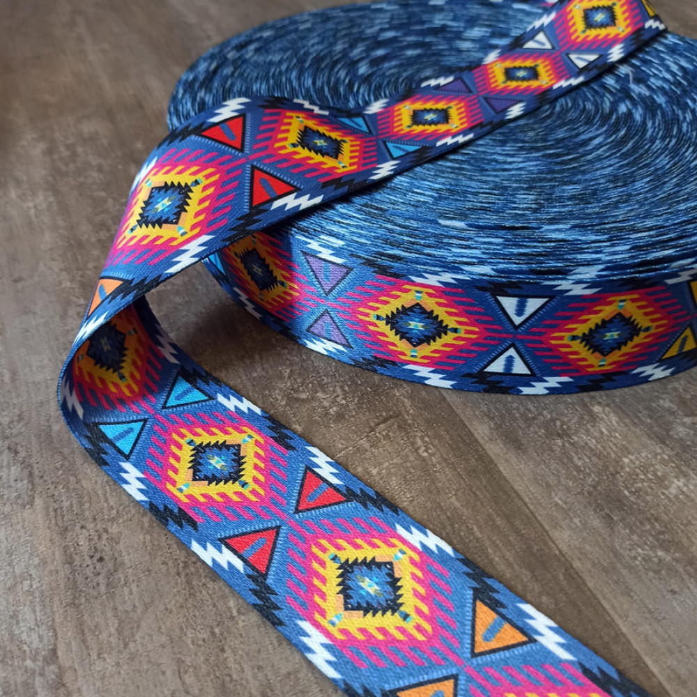 Стропа (ременная лента) плотная из синтетических волокон - геометрический узор с элементами песочных часов.