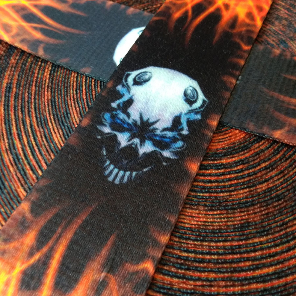 Стропа (ременная лента) средней плотности из синтетических волокон. Оригинальное цветовое сочетание текстильной стропы с ярким принтом (призрак с отблесками пламени) украсит ваше изделие.