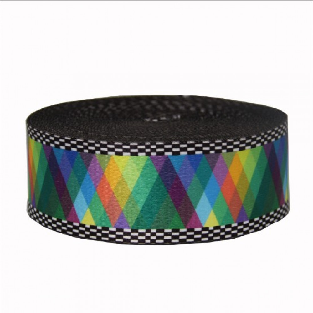Плотная ременная лента из синтетических волокон. Оригинальное цветовое сочетание ленты украсит ваше изделие.
