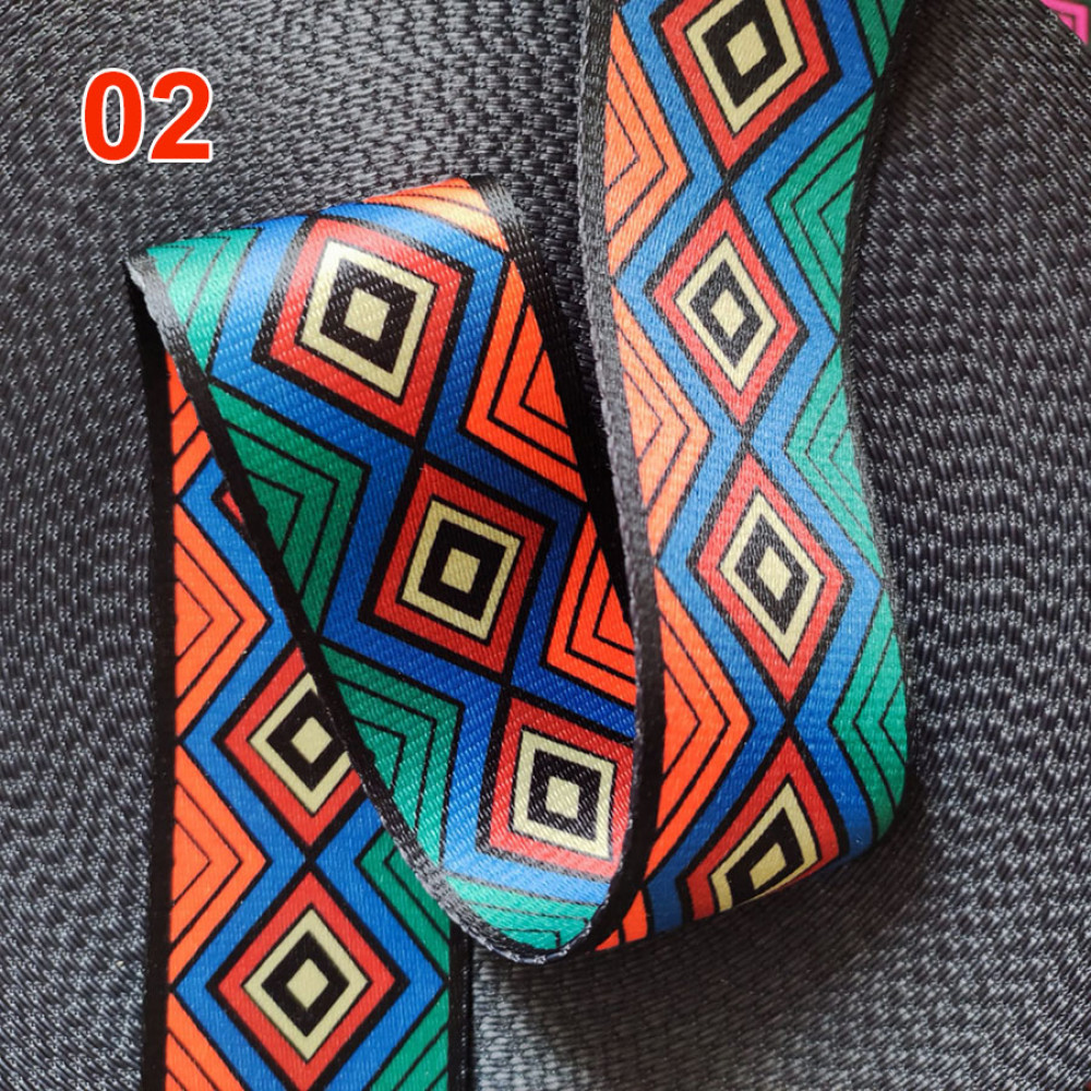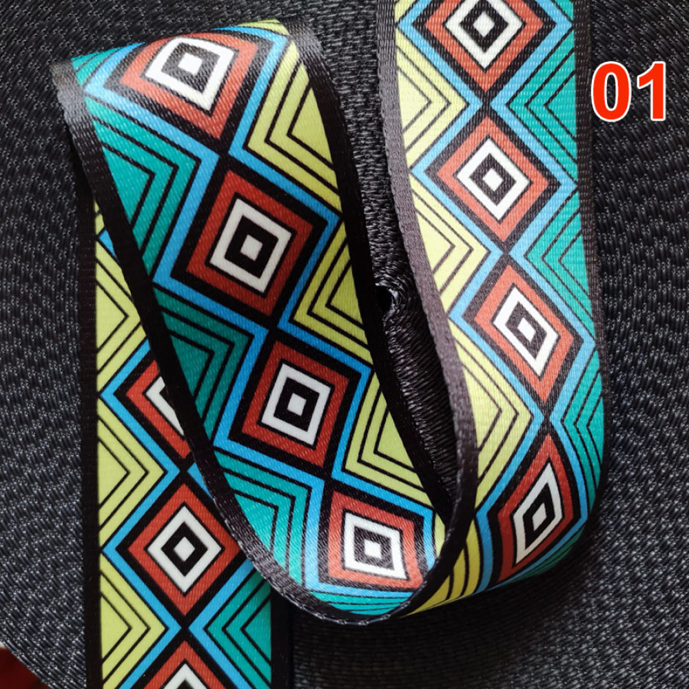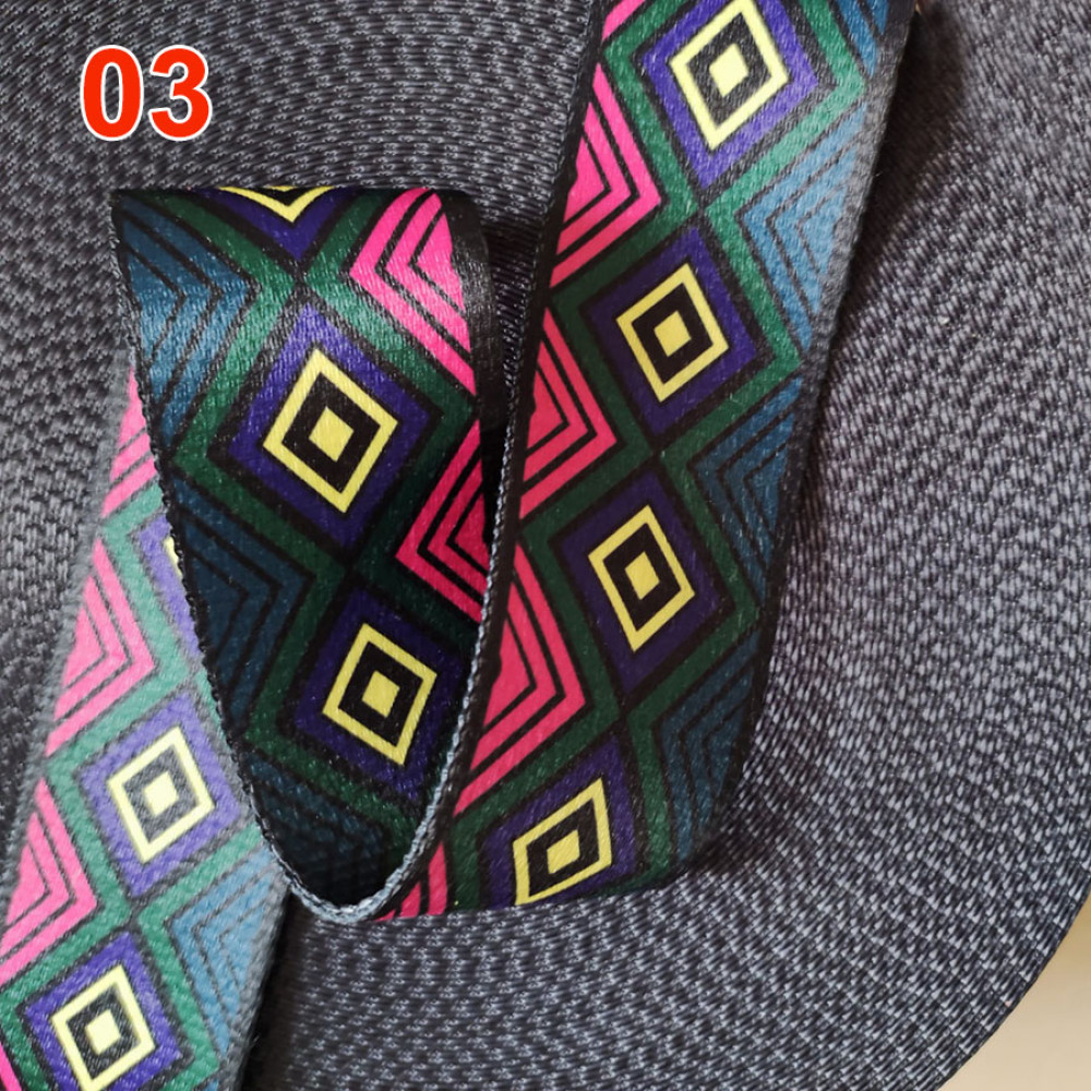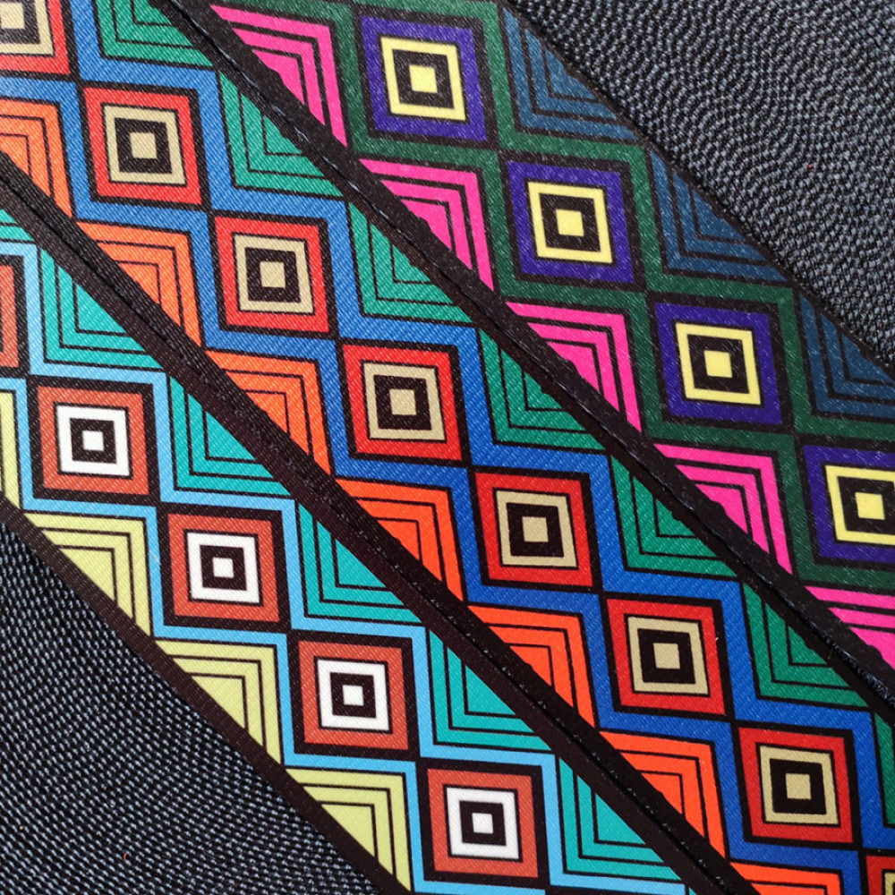 Стропа текстильная (ременная лента) плотная из синтетических волокон. Оригинальное цветовое сочетание ременной тесьмы с ярким геометрическим принтом - ромбы в разных вариантах расцветок украсит ваше изделие.