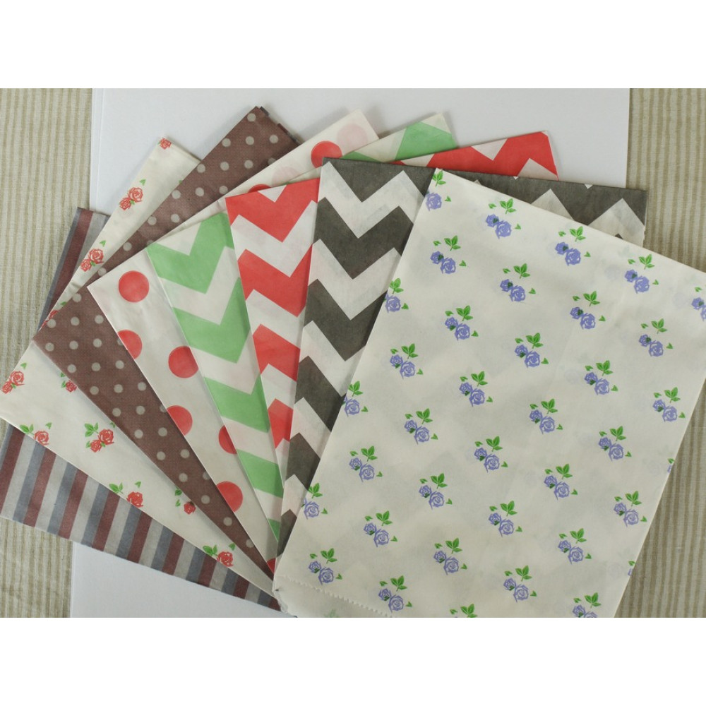 Плоские пакетики из тонкой крафт бумаги разных расцветок.