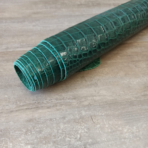 Кожа КРС хромового дубления с тиснением плитой под крокодила. Кожа тонкая, плотная. Лицо гладкое, ма..