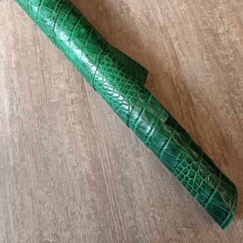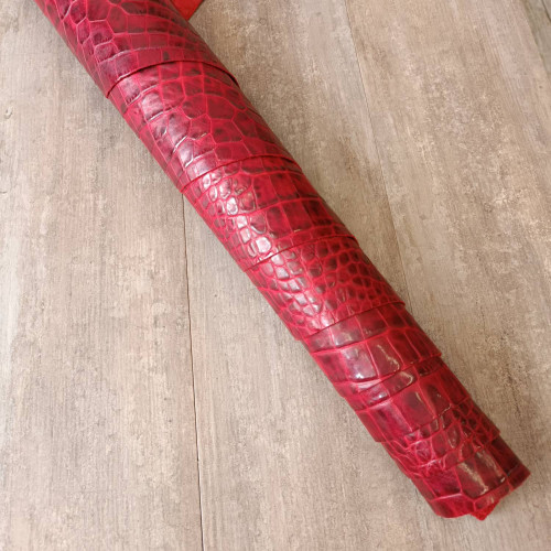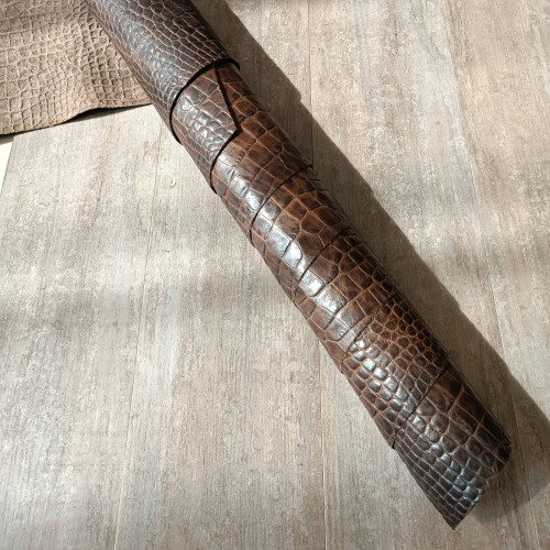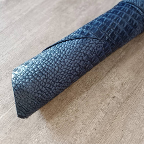 Кожа КРС хромового дубления с тиснением плитой под каймана. Кожа тонкая, плотная. Лицо гладкое, мато..