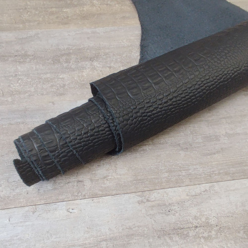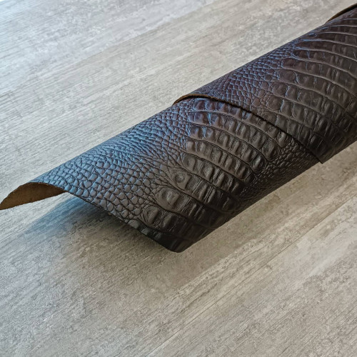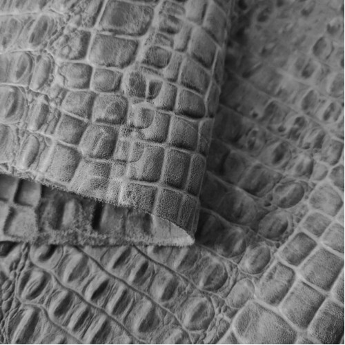 Кожа КРС хромового дубления с тиснением плитой под каймана. Кожа тонкая, плотная. Лицо гладкое, мато..