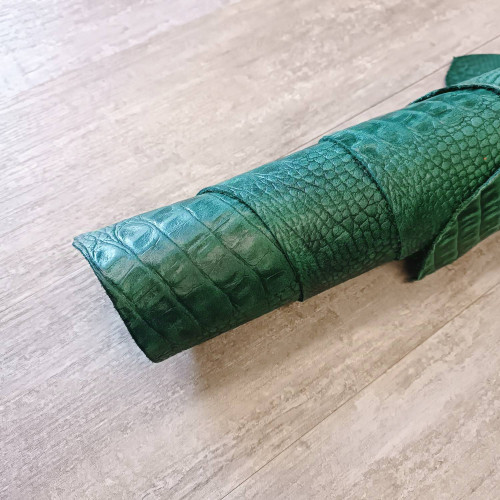 Кожа КРС хромового дубления с тиснением плитой под крокодила. Кожа тонкая, плотная. Лицо гладкое, яр..