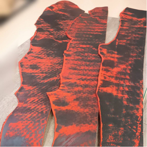 Кожа натуральная хромового дубления с ярко выраженным эффектом пулл-ап. Лицо с финишем, бахтарма ров..