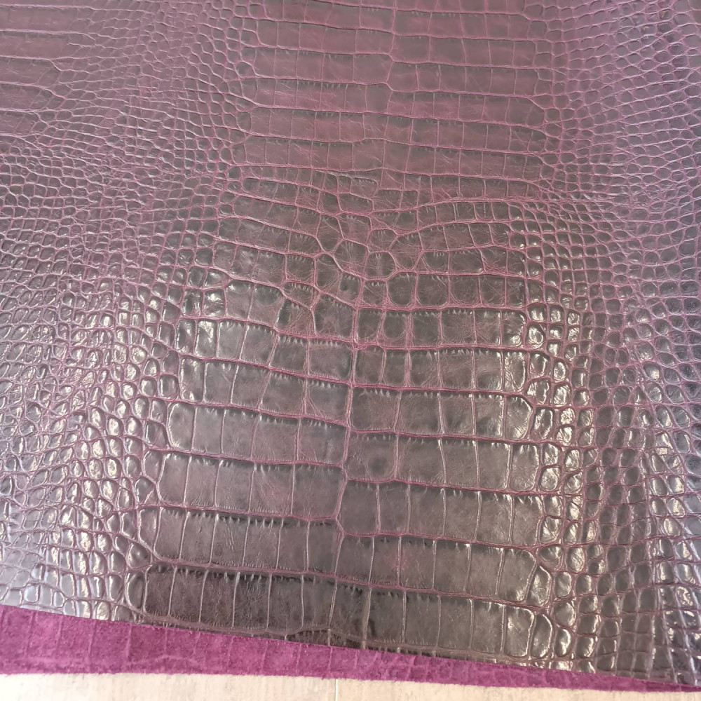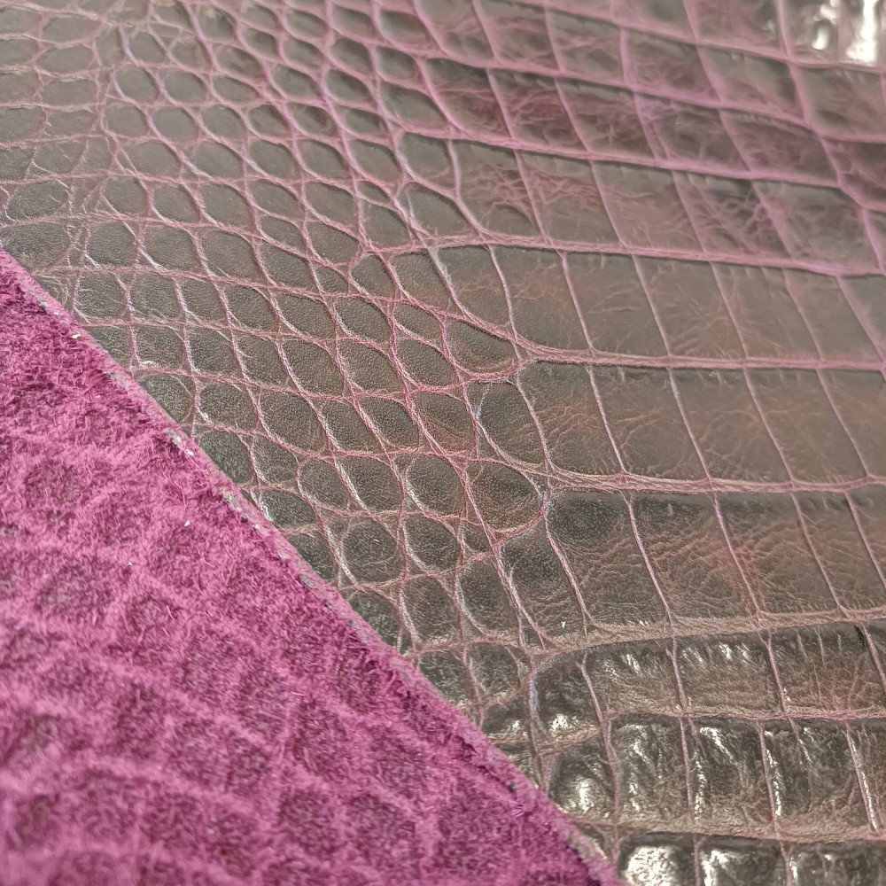 Кожа КРС хромового дубления с тиснением плитой под каймана. Кожа тонкая, плотная. Лицо гладкое, оригинальный цвет и узор.