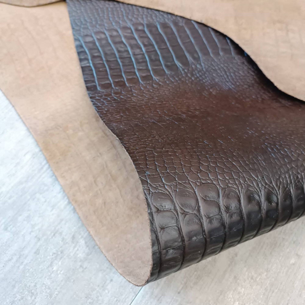 Кожа натуральная КРС хромового дубления с тиснением плитой под крокодила. Кожа тонкая, плотная. Лицо гладкое, матовое, чистый цвет и узор.