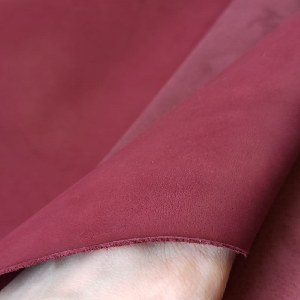 Кожа натурального крс хромового дубления - краст бордового цвета, толщина 1,3-1,7, пластичный, держит форму, разбит в барабане. Лицо с ярко выраженной мереей, бахтарма ровная. Отлично подойдет для пошива сумок, клатчей, бананок, рюкзаков, саквояжей, чемоданов.