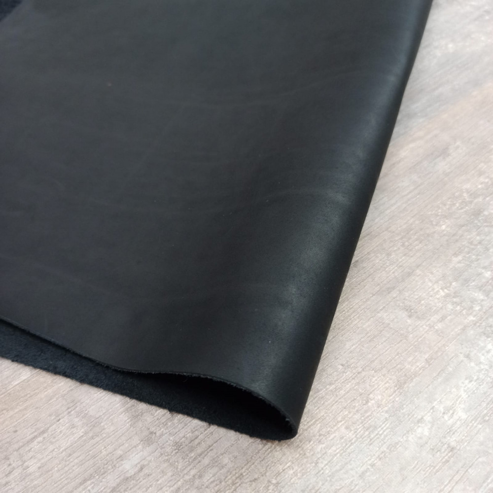 Краст черного цвета хромового дубления, толщина 1,2-1,4, пластичный, будет немного держать форму, разбит в барабане. Лицо ровное, бархатистое. бахтарма ровная. Отлично подойдет для пошива сумок, клатчей, бананок, рюкзаков.
