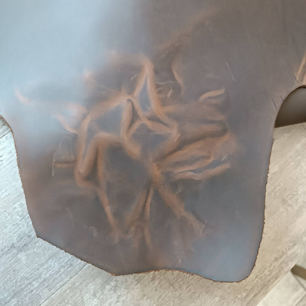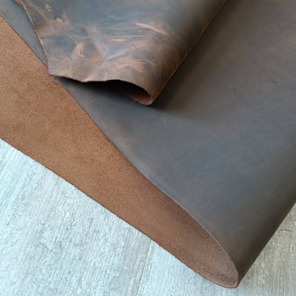 Кожа Крейзи Хорс Dark. Шлифованная кожа КРС с вощеной гладкой матовой поверхностью. Крейзи хорс прочная, стойкая к промоканию кожа стала популярной для изготовления галантереи и обуви.