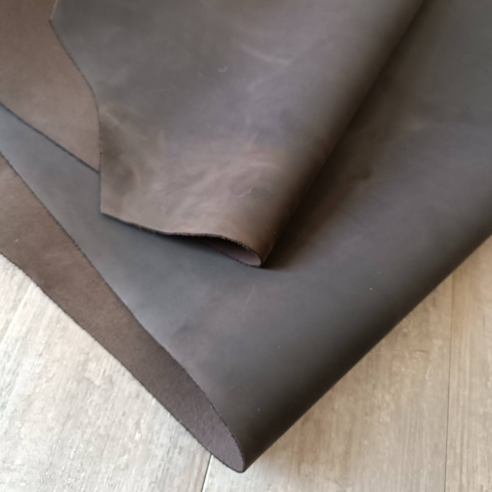 Кожа Крейзи Хорс Dark. Шлифованная кожа КРС с вощеной гладкой матовой поверхностью. Крейзи хорс прочная, стойкая к промоканию кожа стала популярной для изготовления галантереи и обуви.
