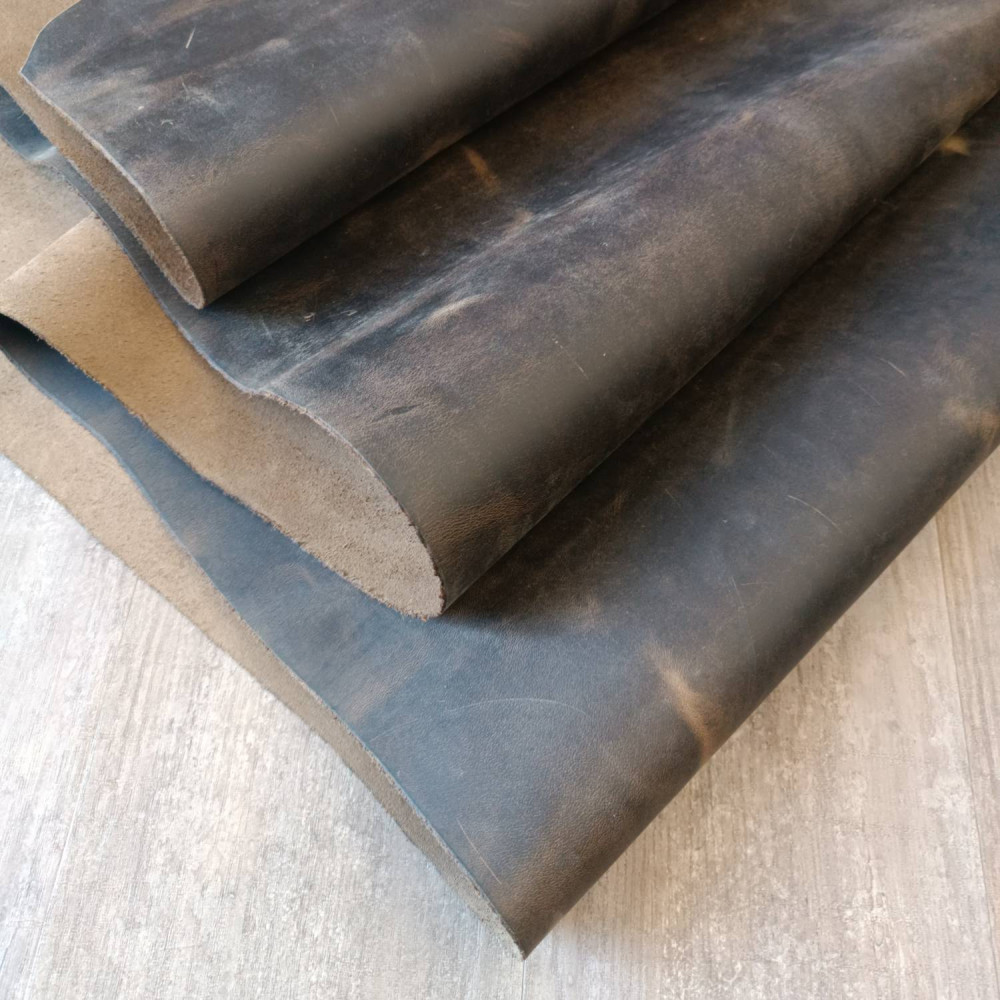Кожа Крейзи Хорс Dark. Шлифованная кожа КРС с вощеной гладкой матовой поверхностью. Крейзи хорс прочная, стойкая к промоканию кожа стала популярной для изготовления галантереи и обуви.