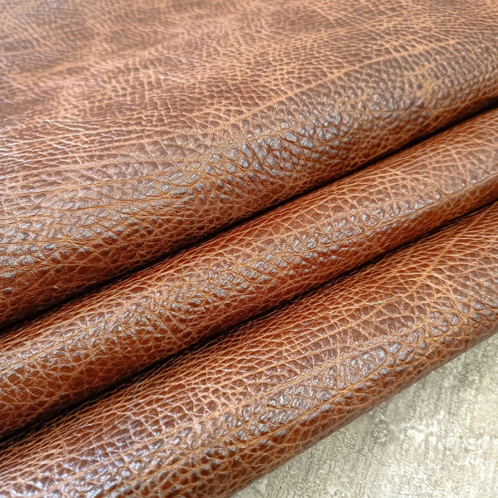 Кожа КРС хромового дубления с тиснением плитой под слона . Кожа тонкая, плотная. Оригинальный цвет и узор.