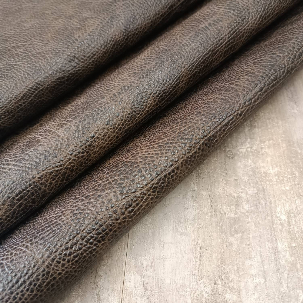 Кожа КРС хромового дубления с тиснением плитой под слона . Кожа тонкая, плотная. Оригинальный цвет и узор.