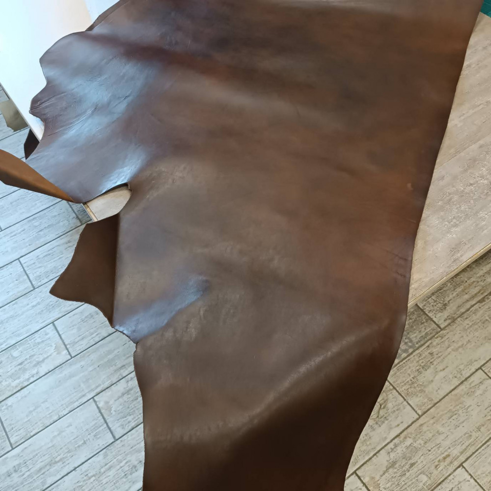 Кожа продается полушкурами - в списке опций указаны размеры конкретных шкур в дм2, которые имеются в наличии.