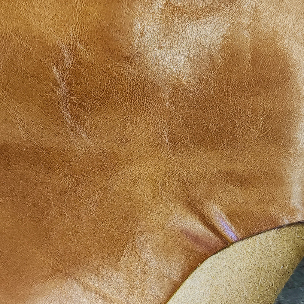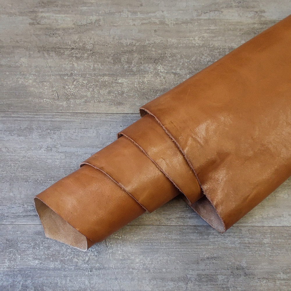 Итальянская кожа КРС растительного дубления с финишным покрытием с естественной фактурой . Кожа плотная, лицо гладкое, с глянцевым блеском.